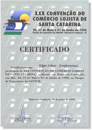 XXX Convenção do Comércio Lojista de Santa Catarina III Seminário de Dirigentes Lojistas de Santa Catarina Parque de Exposições da Santur Balneário Camboriú - SC 30/05 a 01/06/96