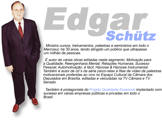 Ao longo de 3 décadas, Edgar Schütz vem ministrando - seminários, palestras, cursos, em âmbito nacional e em todo o Mercosul.